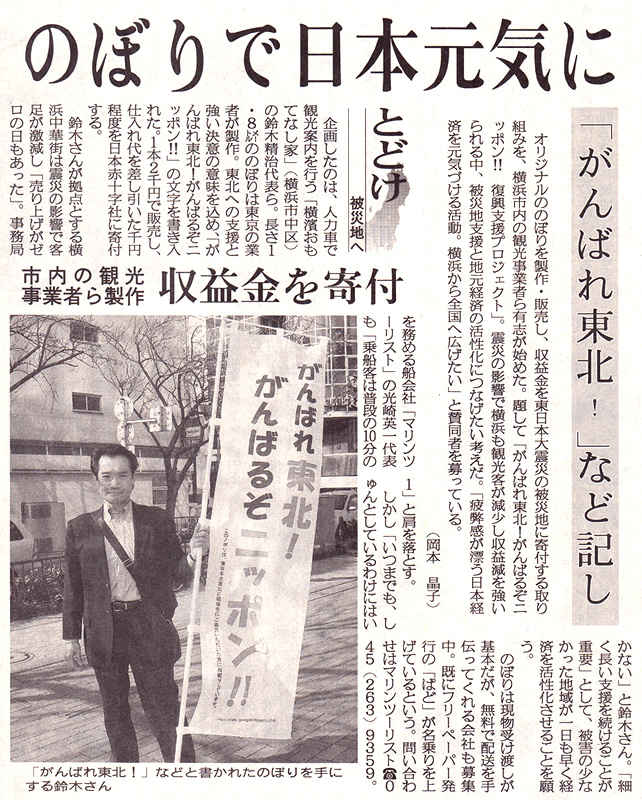 2011年4月5日 神奈川新聞に「復興支援活動」が紹介されました。
