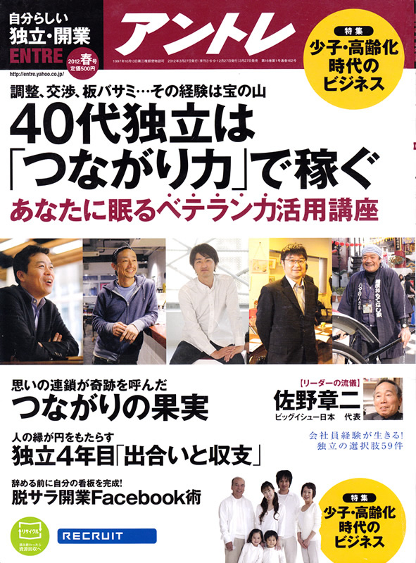 2012年3月27日 独立開業支援雑誌「アントレ」に紹介されました。